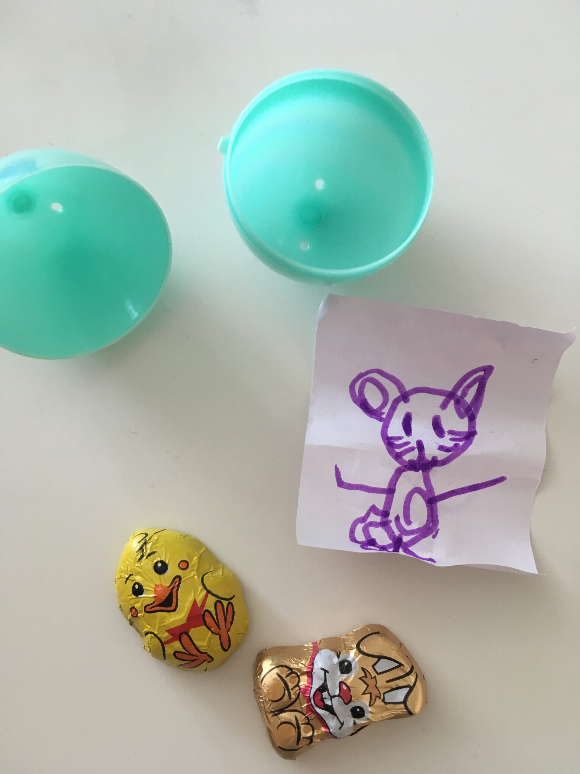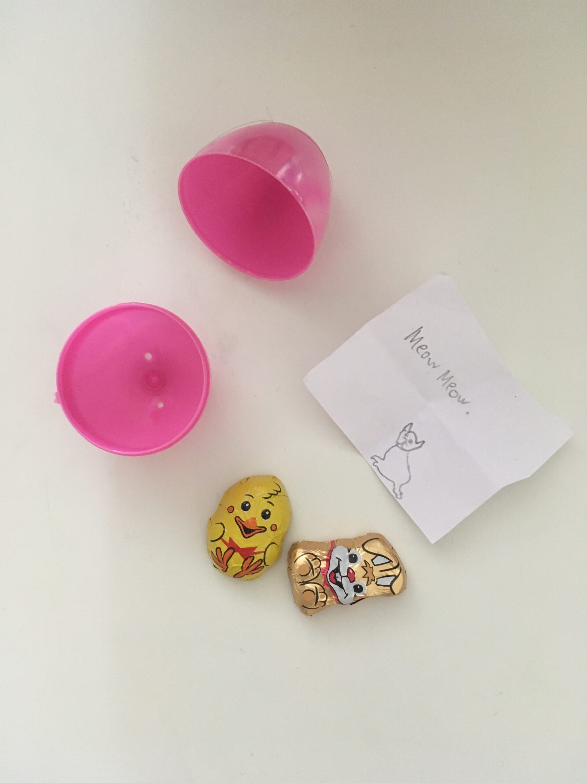 と察知した時に一応買っておいた小さなチョコと、昨年使ってとっておいた卵型の