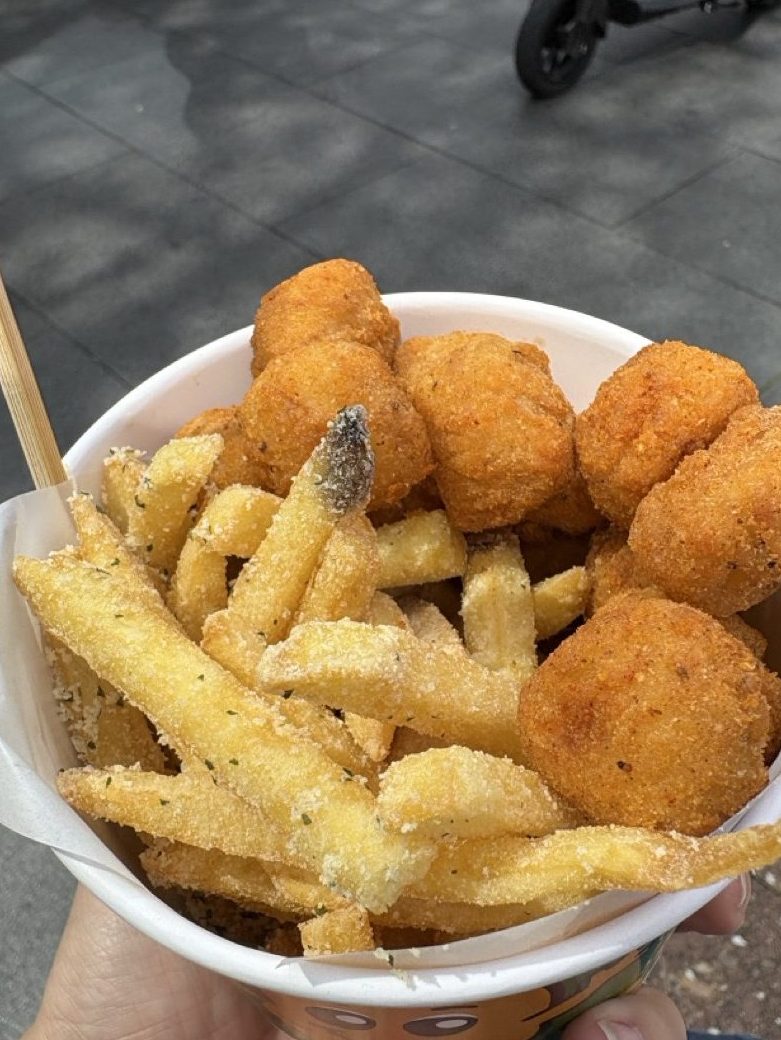 母も「ジャンク」を楽しむべく、すぐ近くにあるフライドポテト屋さんで一休み。